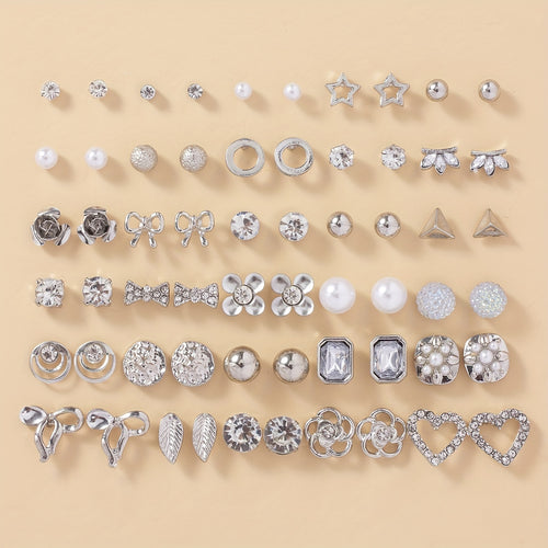 30 Pairs of Dazzling Rhinestone Faux Pearl Earrings Set